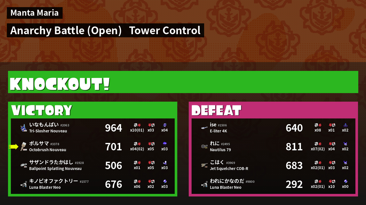 | Mode | Tower Control - Anarchy Battle (Open) | ||