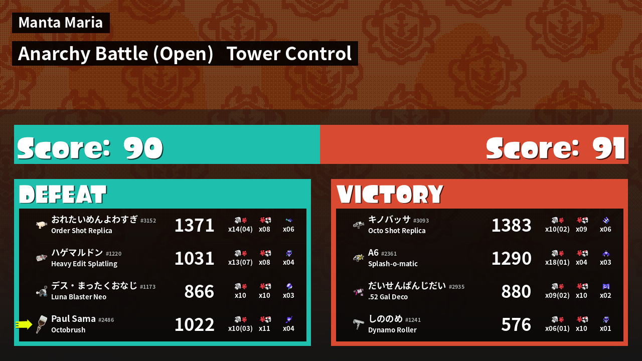 | Mode | Tower Control - Anarchy Battle (Open) | ||