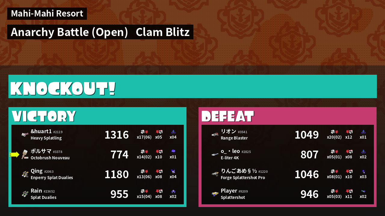 Name | Weapon | Inked | ![]() |
