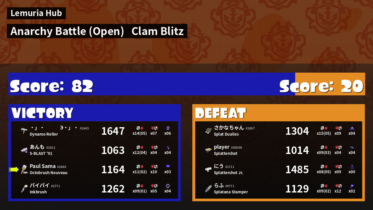 | Mode | Clam Blitz - Anarchy Battle (Open) | ||