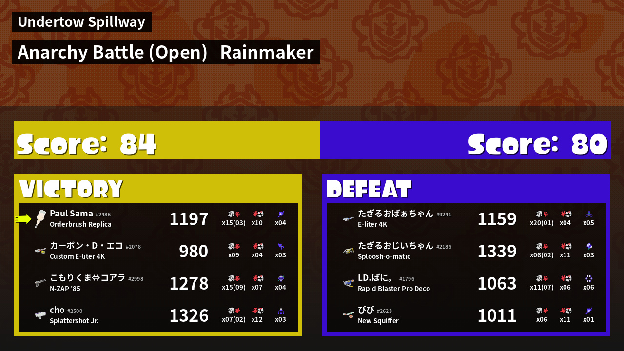 | Mode | Rainmaker - Anarchy Battle (Open) | ||