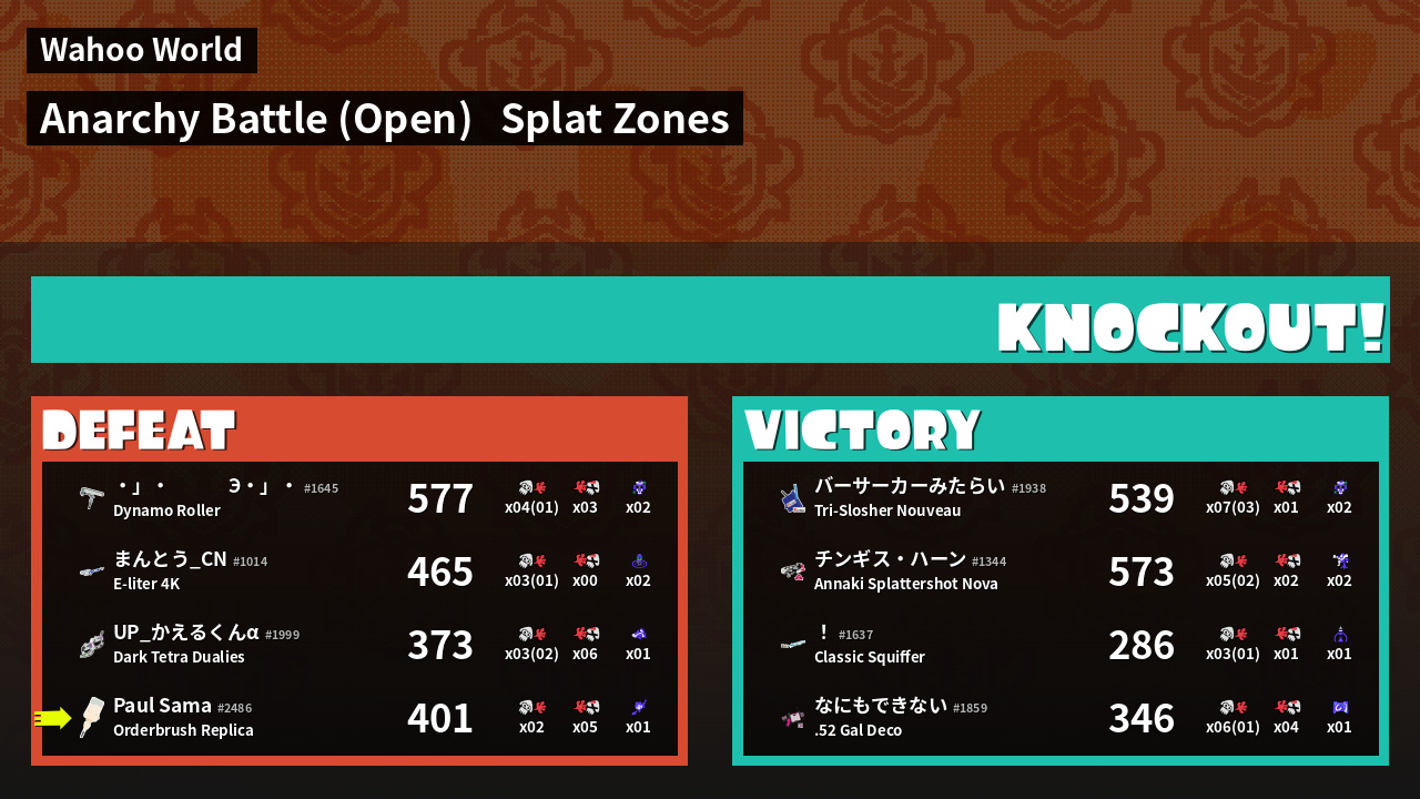 | Mode | Splat Zones - Anarchy Battle (Open) | ||