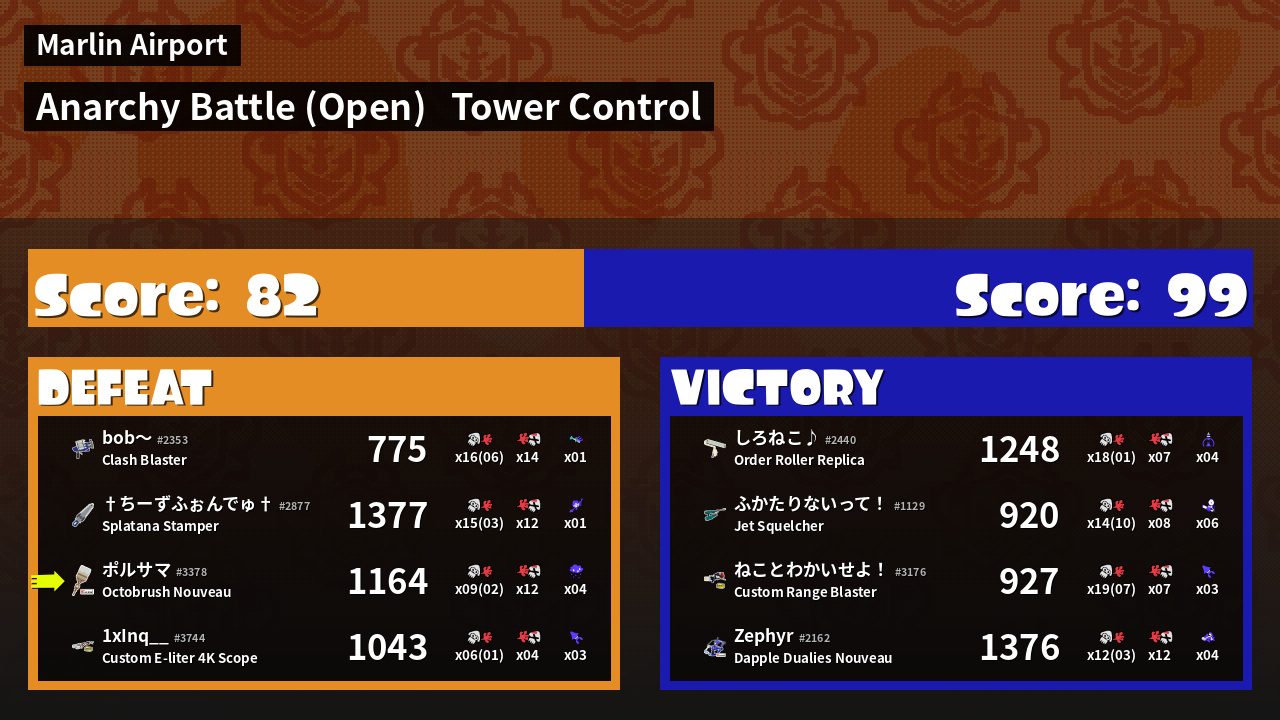 | Mode | Tower Control - Anarchy Battle (Open) | ||