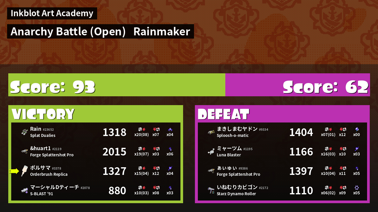 Name | Weapon | Inked | ![]() |