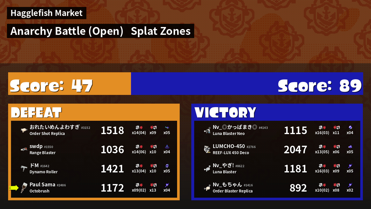| Mode | Splat Zones - Anarchy Battle (Open) | ||