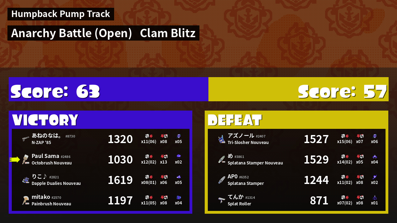 | Mode | Clam Blitz - Anarchy Battle (Open) | ||