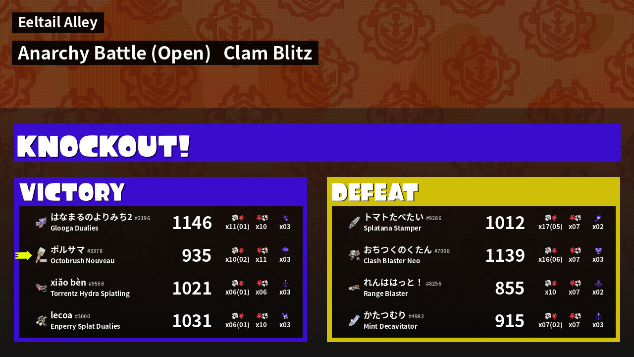 | Mode | Clam Blitz - Anarchy Battle (Open) | ||