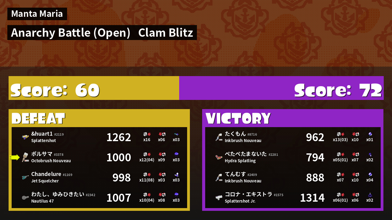 | Mode | Clam Blitz - Anarchy Battle (Open) | ||