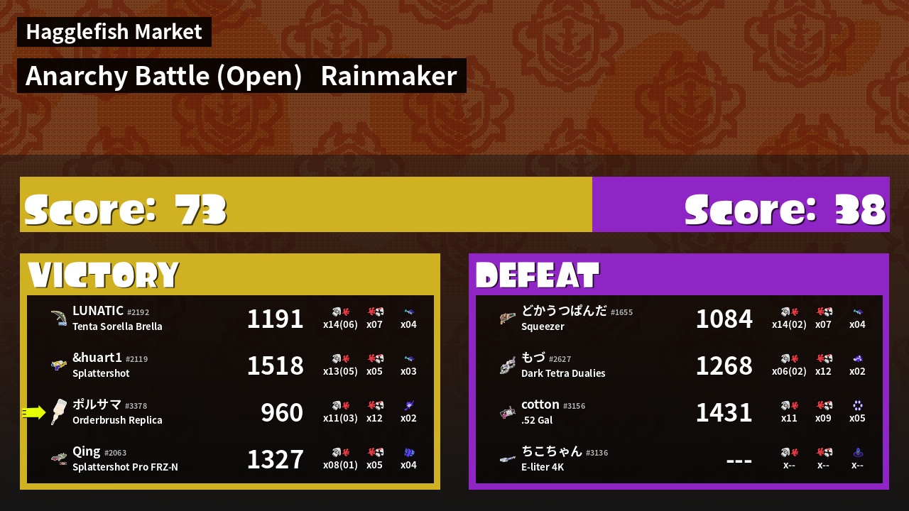 Name | Weapon | Inked | ![]() |