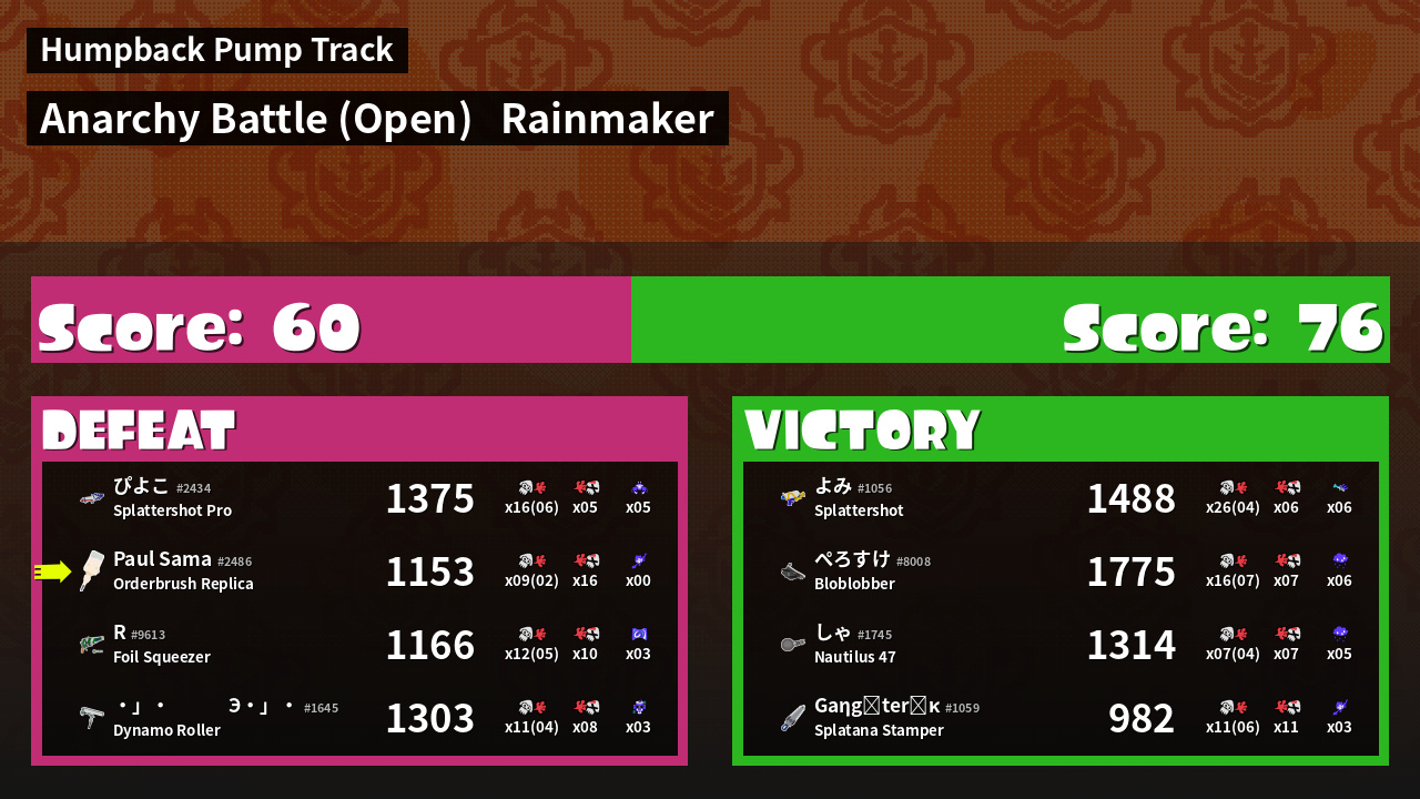 | Mode | Rainmaker - Anarchy Battle (Open) | ||