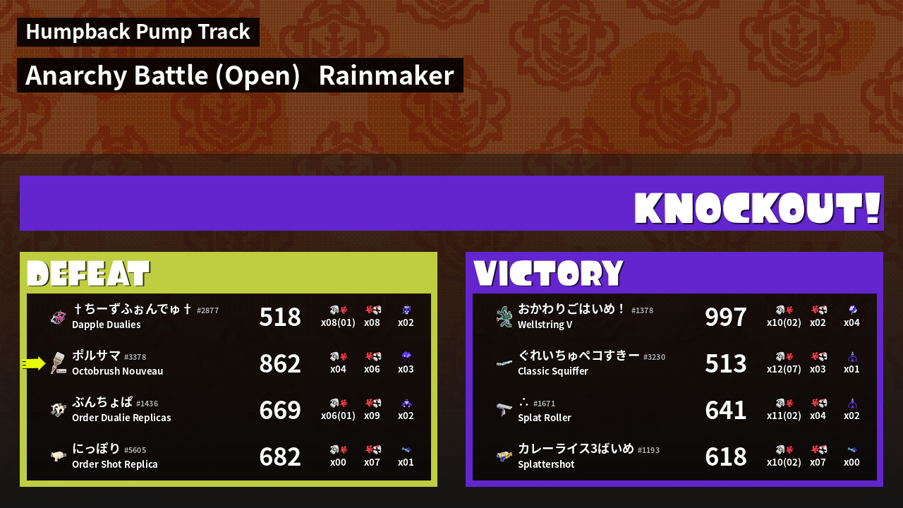 | Mode | Rainmaker - Anarchy Battle (Open) | ||