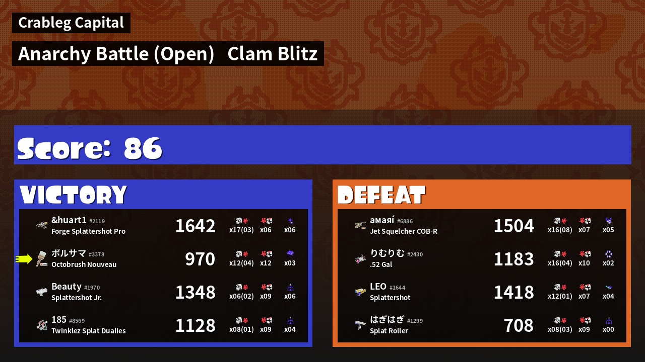 | Mode | Clam Blitz - Anarchy Battle (Open) | ||