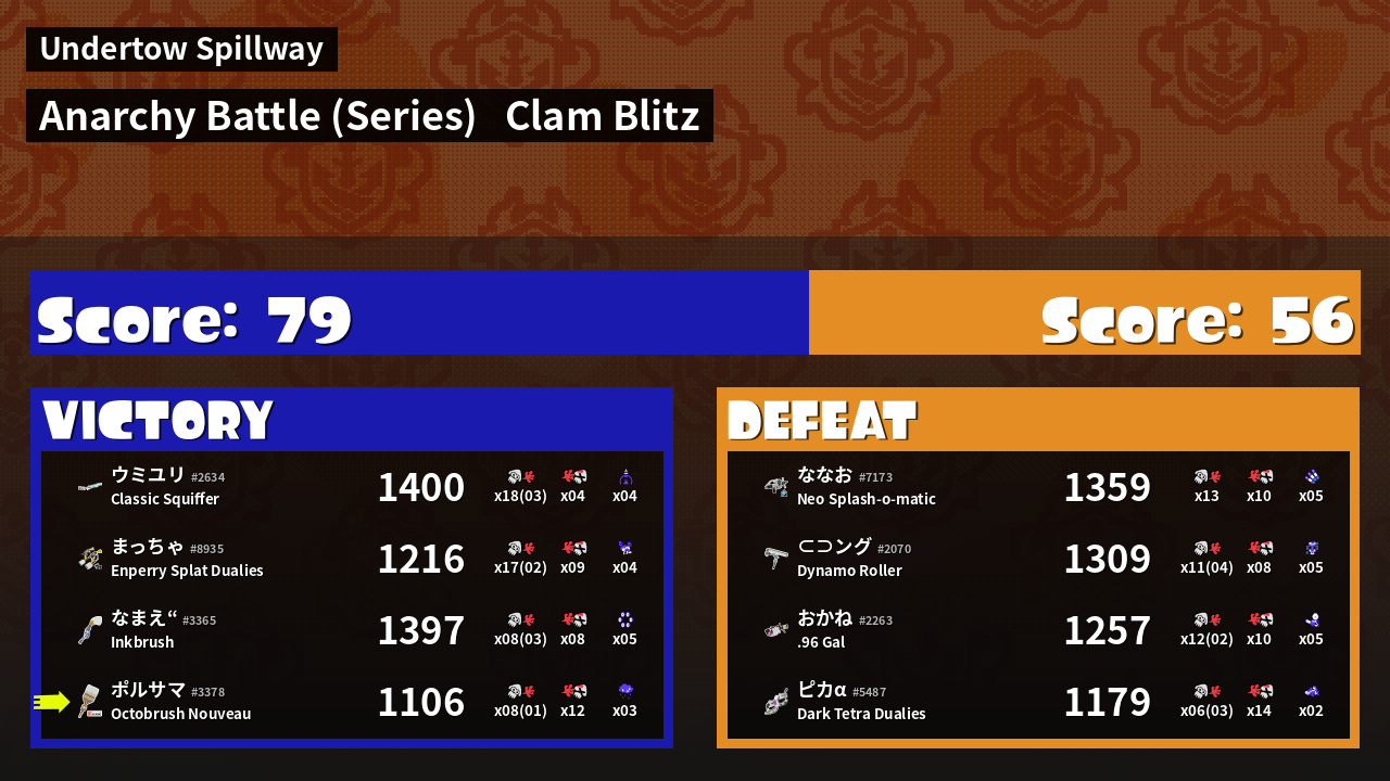 | Mode | Clam Blitz - Anarchy Battle (Series) | ||