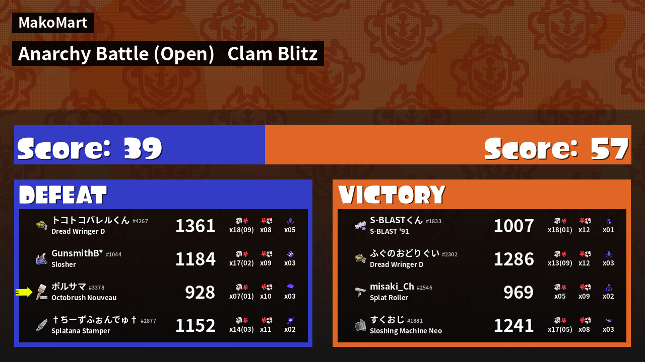 | Mode | Clam Blitz - Anarchy Battle (Open) | ||