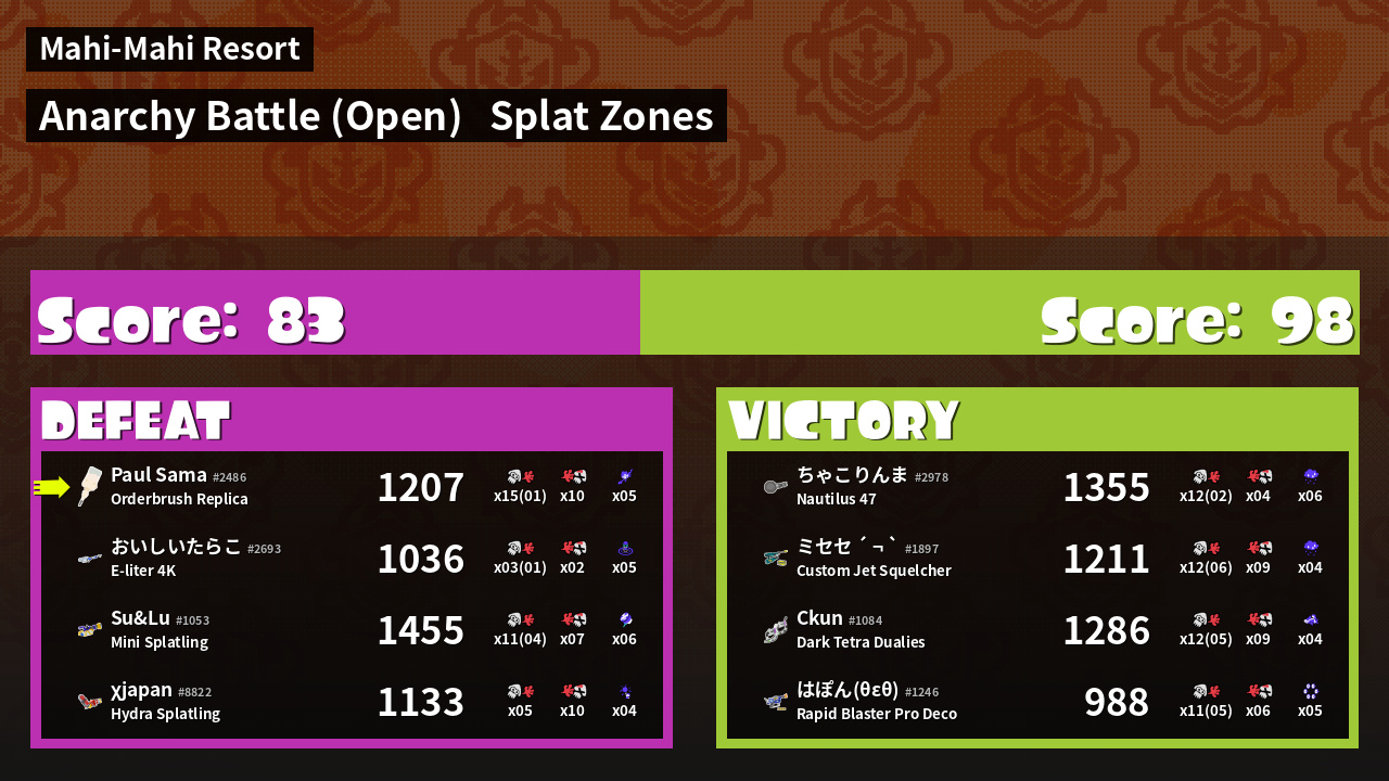 | Mode | Splat Zones - Anarchy Battle (Open) | ||