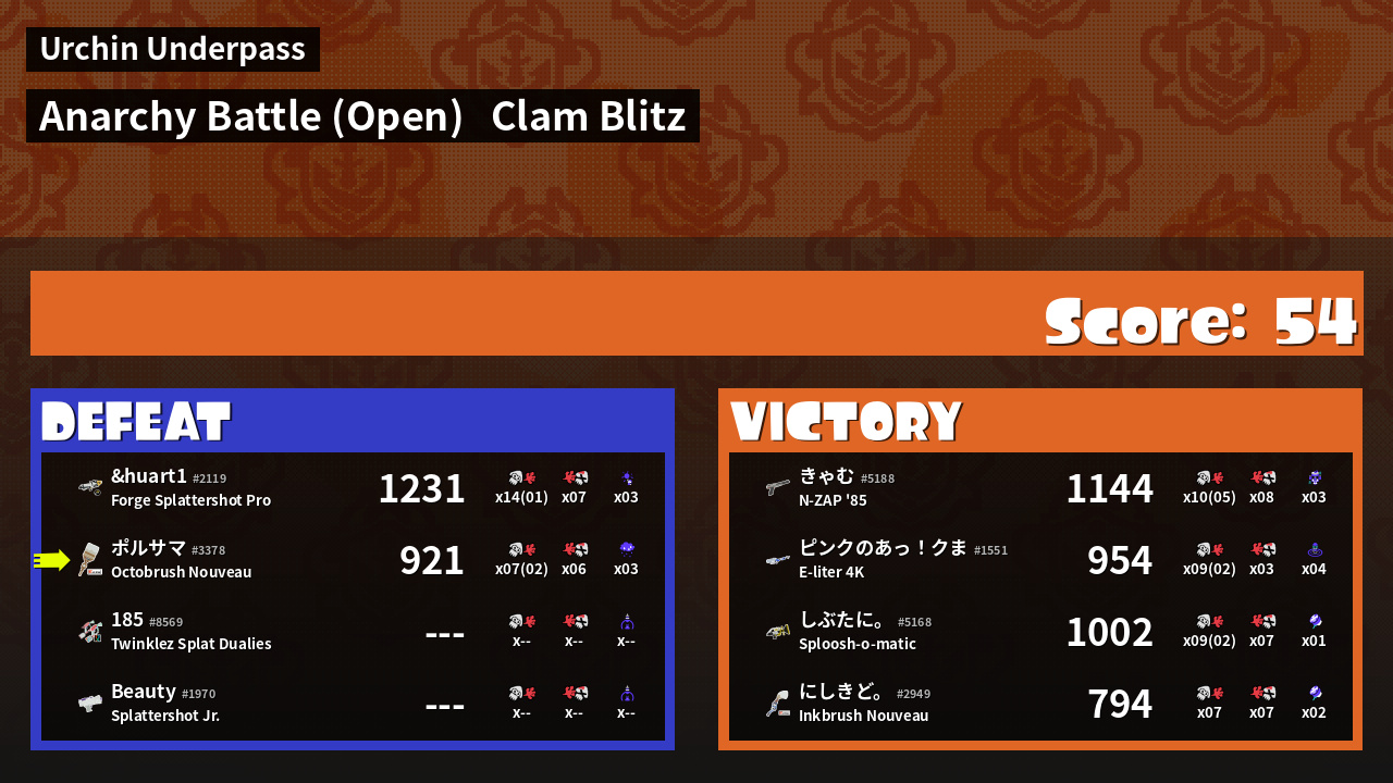 | Mode | Clam Blitz - Anarchy Battle (Open) | ||