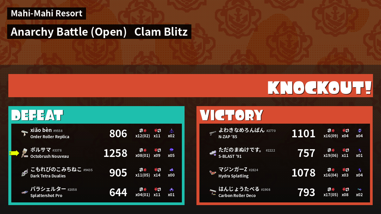 | Mode | Clam Blitz - Anarchy Battle (Open) | ||