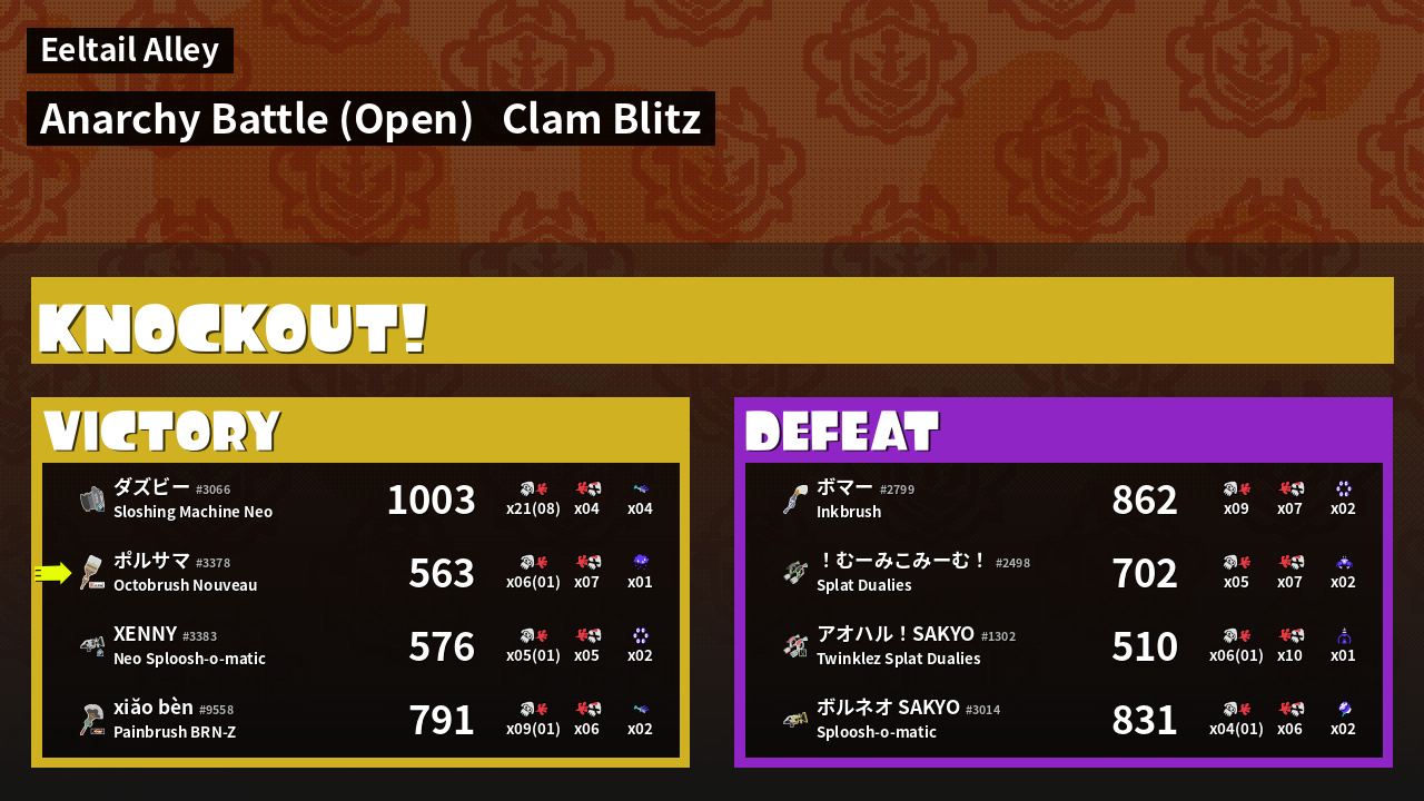 | Mode | Clam Blitz - Anarchy Battle (Open) | ||