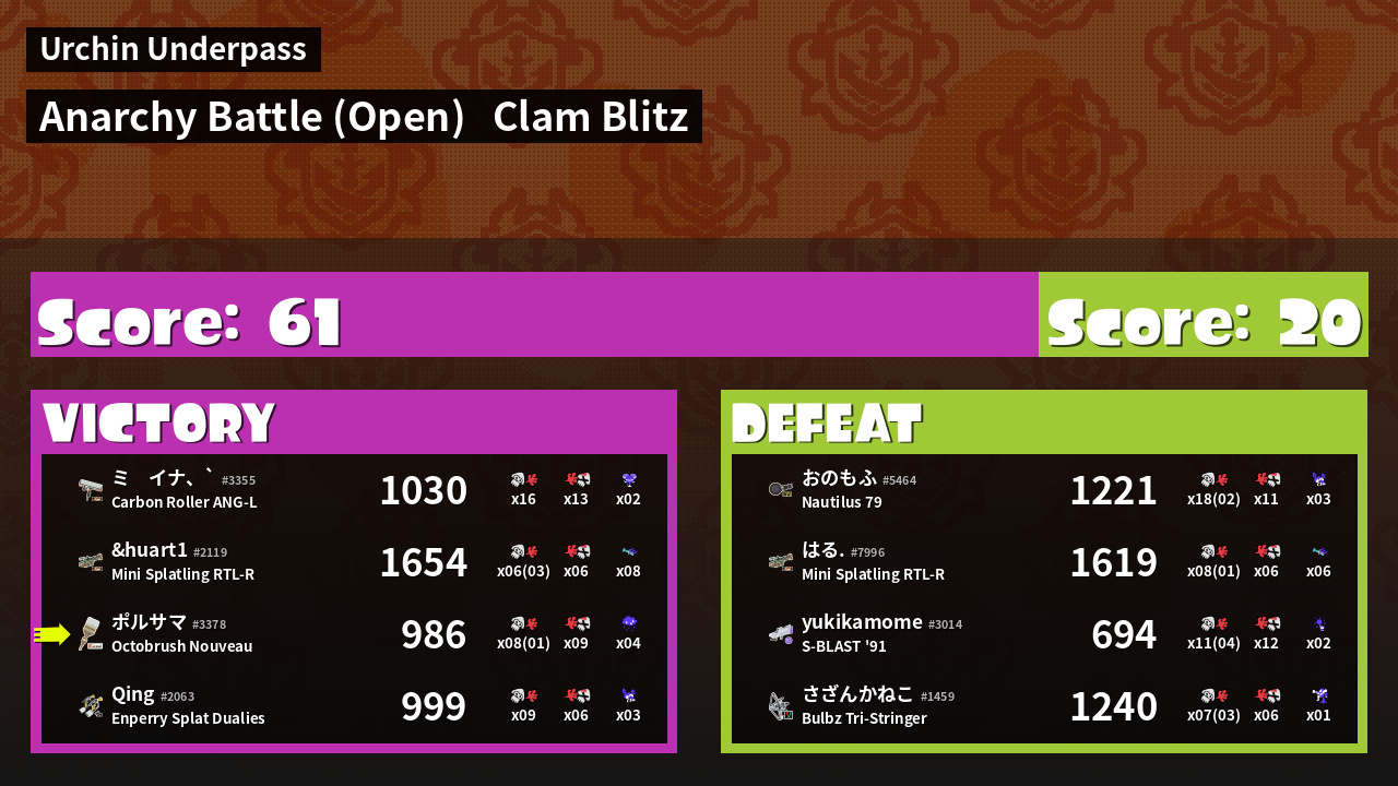 Name | Weapon | Inked | ![]() |