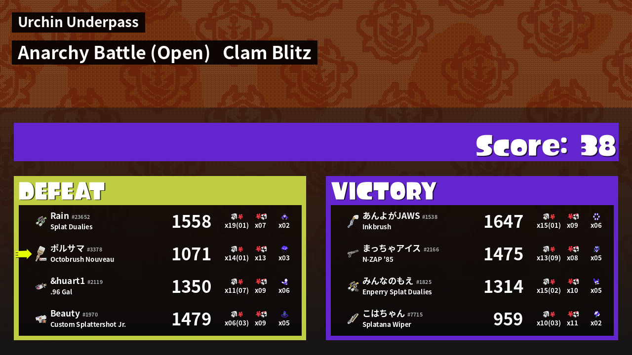 | Mode | Clam Blitz - Anarchy Battle (Open) | ||