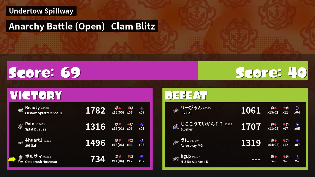 | Mode | Clam Blitz - Anarchy Battle (Open) | ||