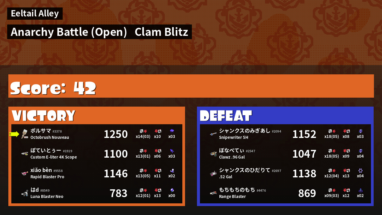 | Mode | Clam Blitz - Anarchy Battle (Open) | ||