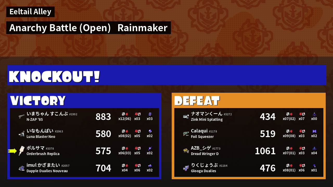 | Mode | Rainmaker - Anarchy Battle (Open) | ||