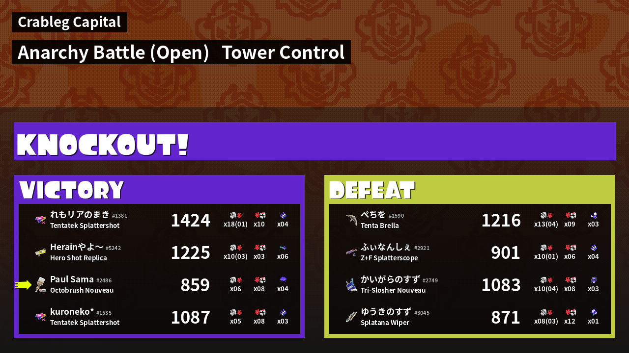 | Mode | Tower Control - Anarchy Battle (Open) | ||
