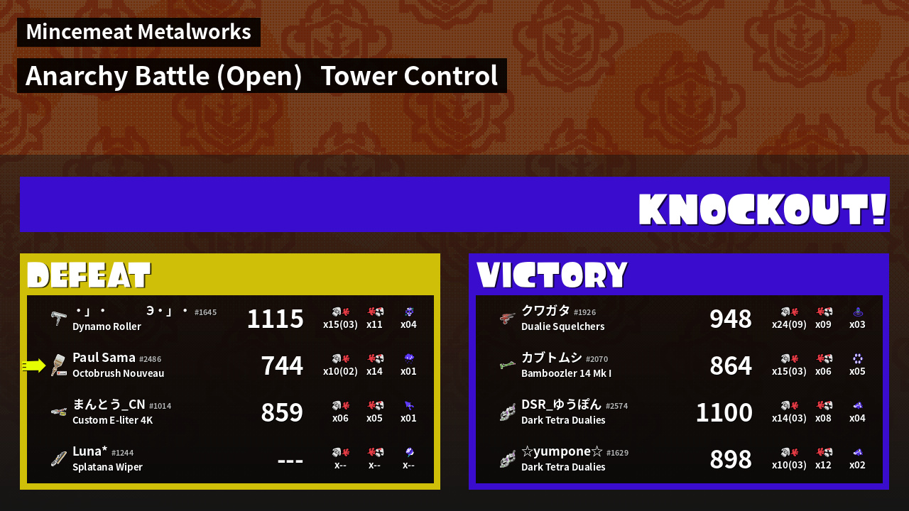 | Mode | Tower Control - Anarchy Battle (Open) | ||