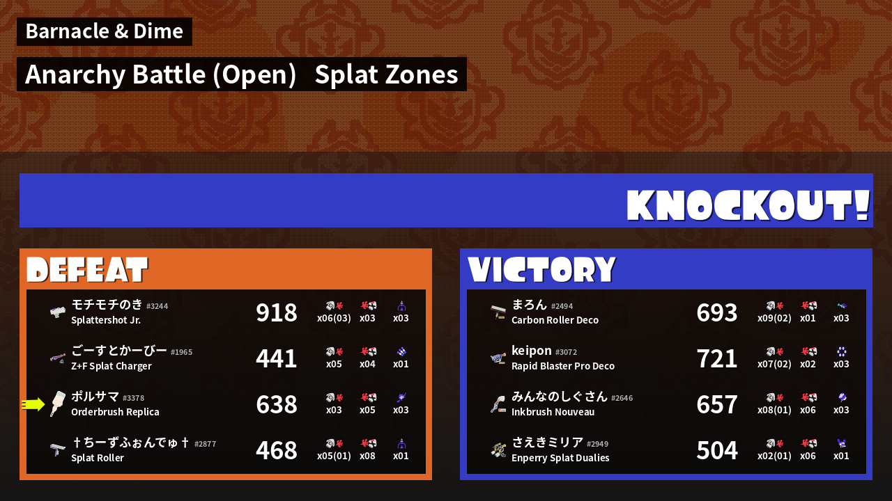 | Mode | Splat Zones - Anarchy Battle (Open) | ||