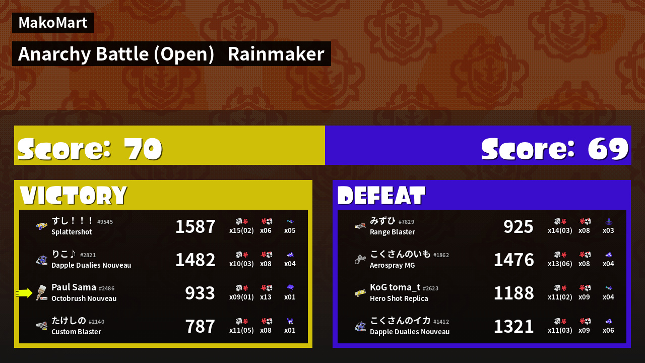 | Mode | Rainmaker - Anarchy Battle (Open) | ||