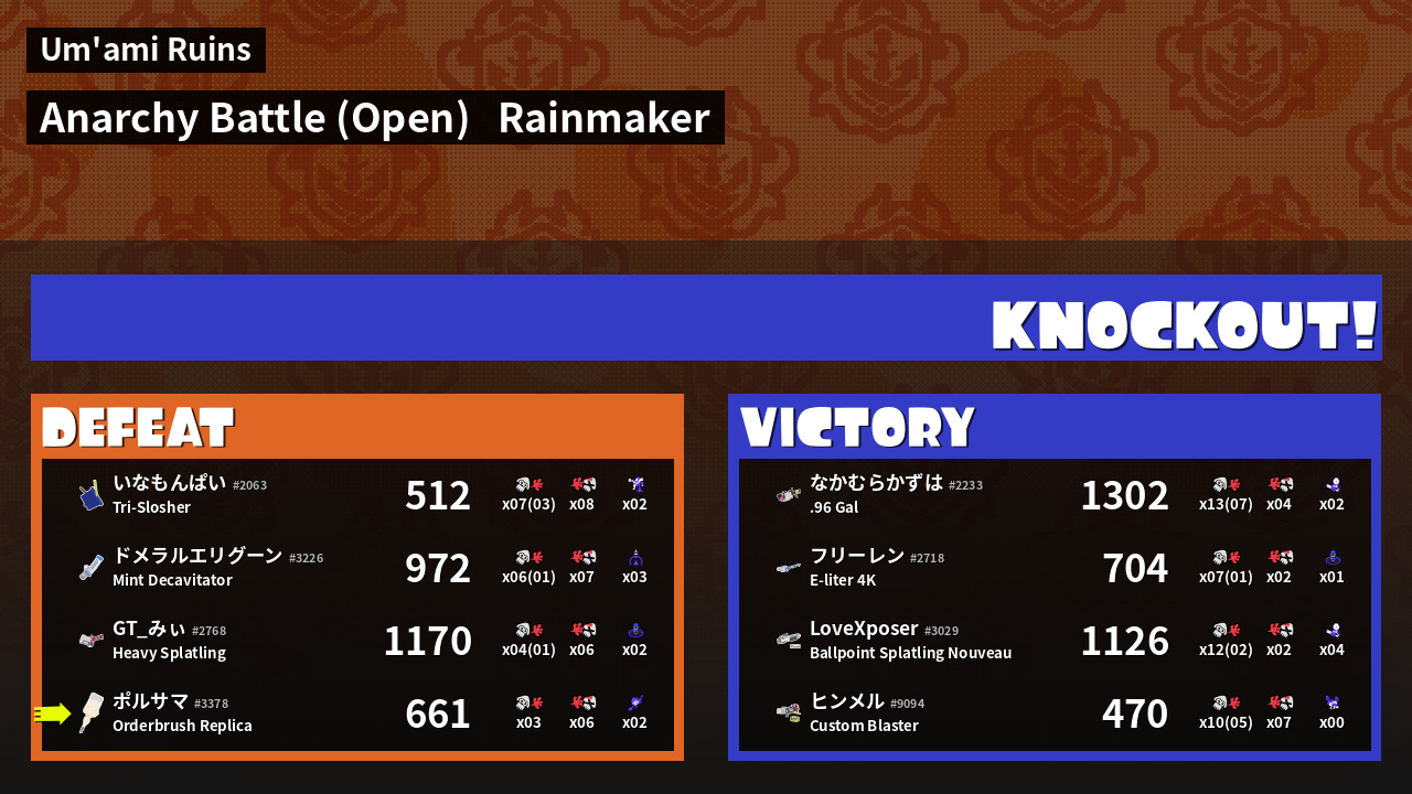 | Mode | Rainmaker - Anarchy Battle (Open) | ||
