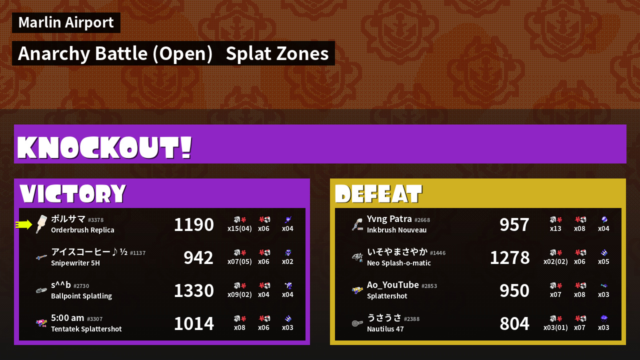 Name | Weapon | Inked | ![]() |