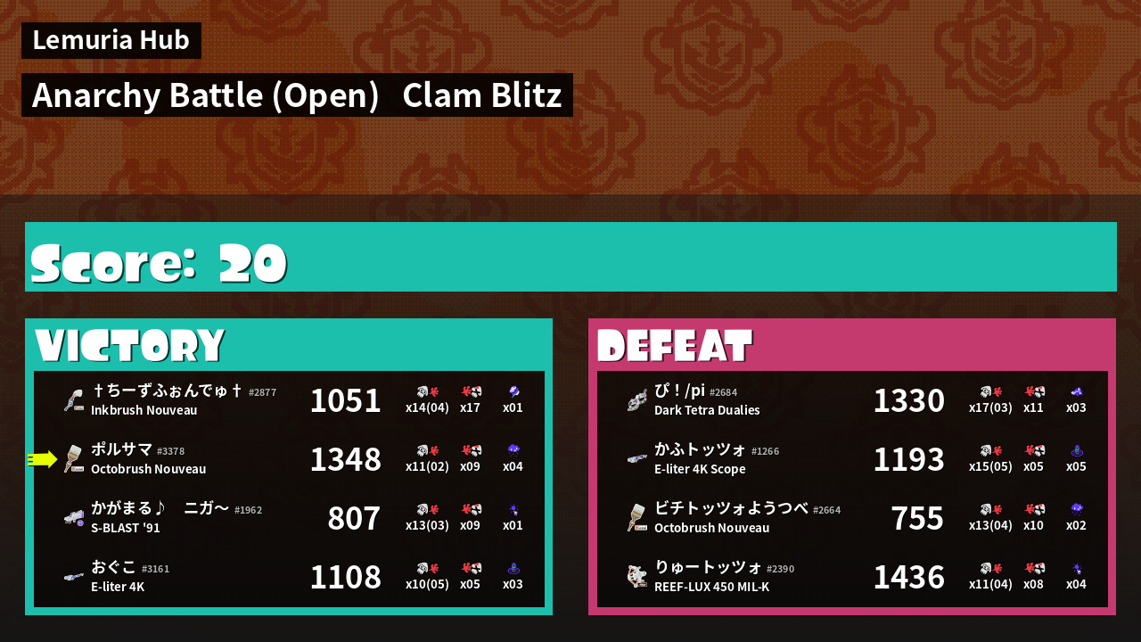 | Mode | Clam Blitz - Anarchy Battle (Open) | ||