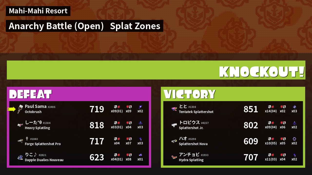 | Mode | Splat Zones - Anarchy Battle (Open) | ||