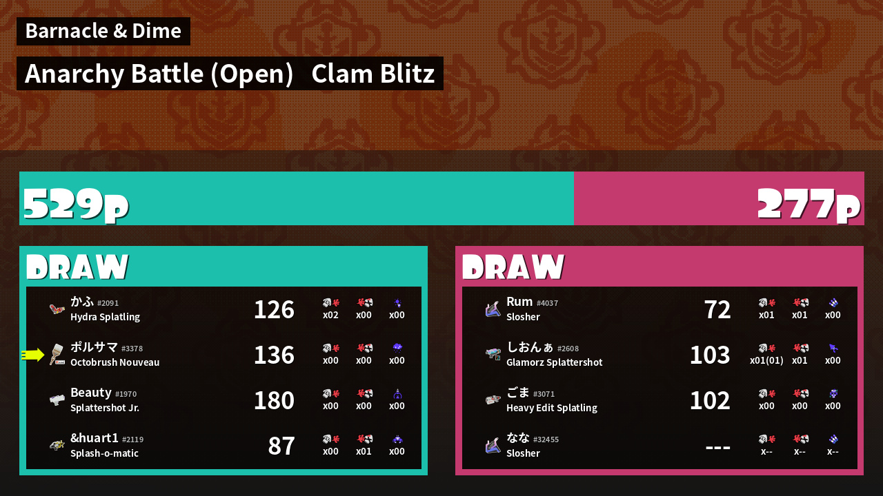 | Mode | Clam Blitz - Anarchy Battle (Open) | ||