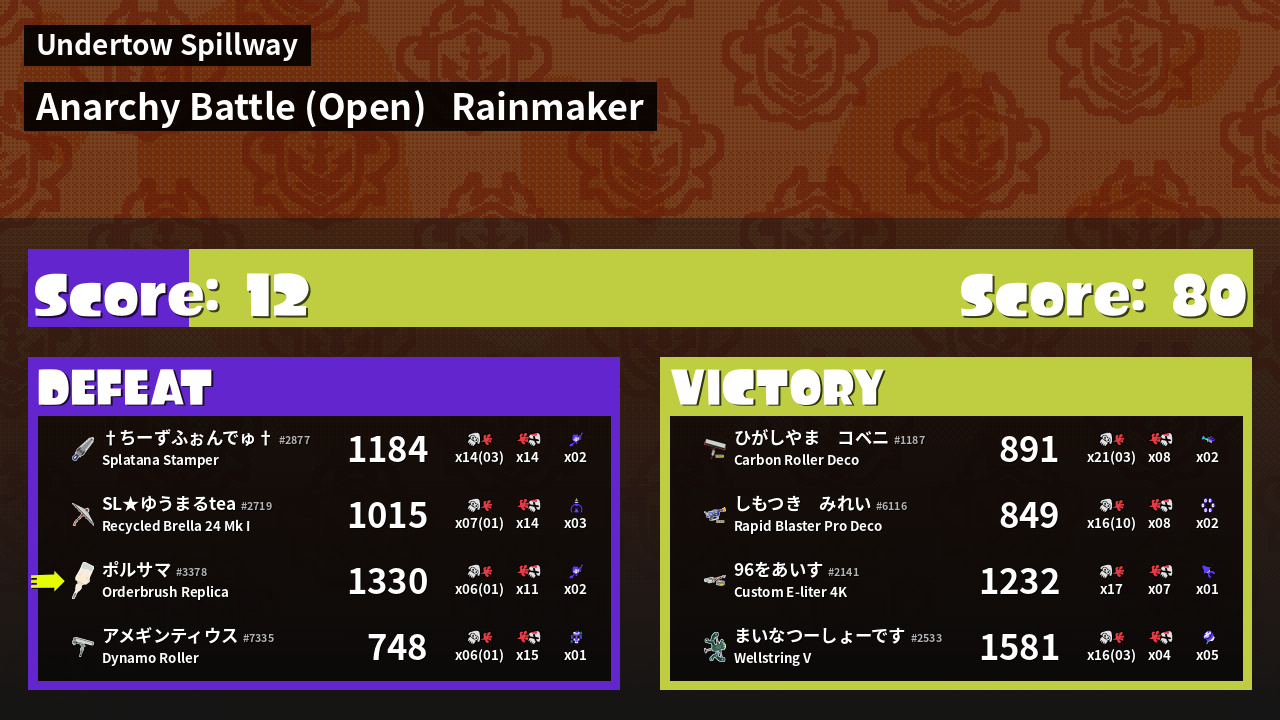 | Mode | Rainmaker - Anarchy Battle (Open) | ||