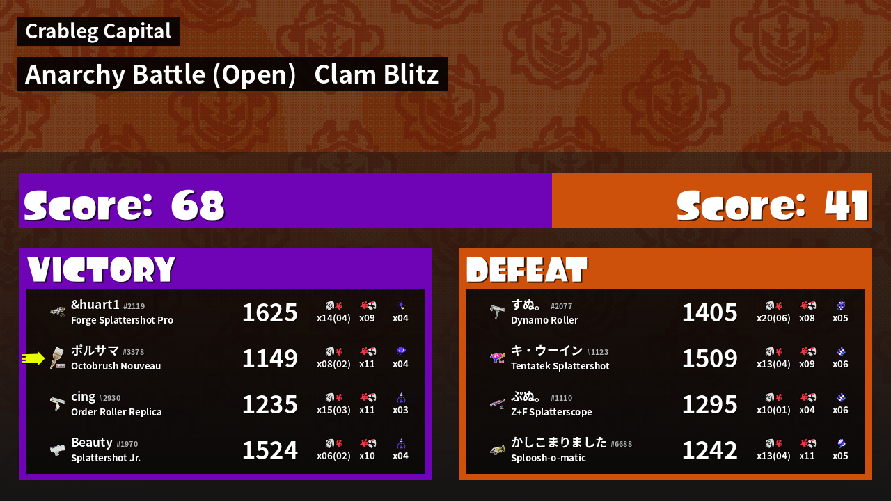 | Mode | Clam Blitz - Anarchy Battle (Open) | ||