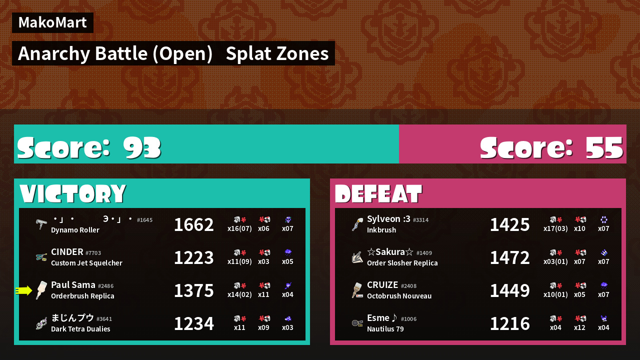 | Mode | Splat Zones - Anarchy Battle (Open) | ||