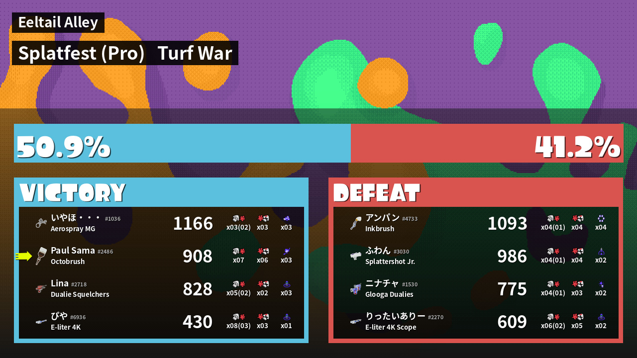 | Medals | #1 Enemy-Base Inker #1 Enemy Splatter #2 Overall Splatter | ||