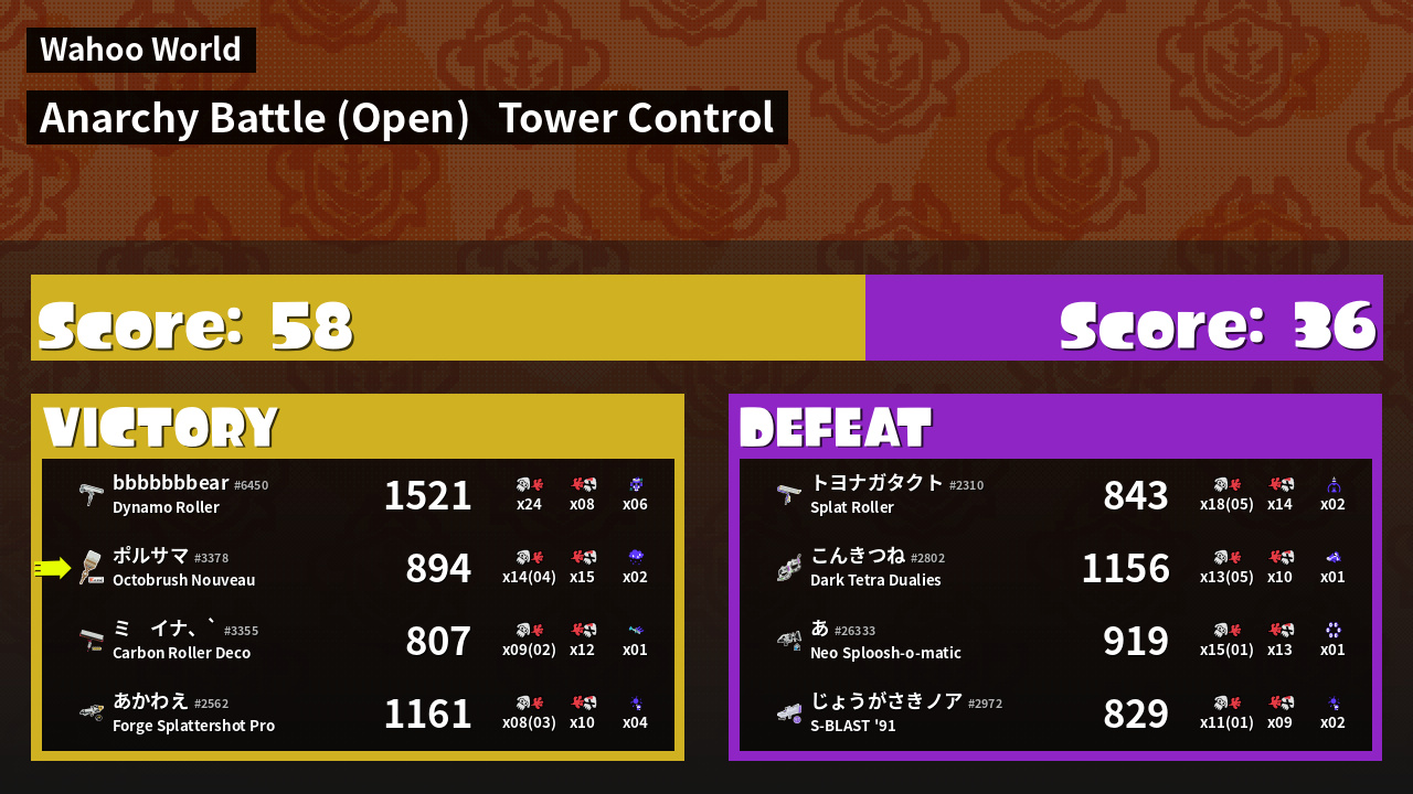| Mode | Tower Control - Anarchy Battle (Open) | ||