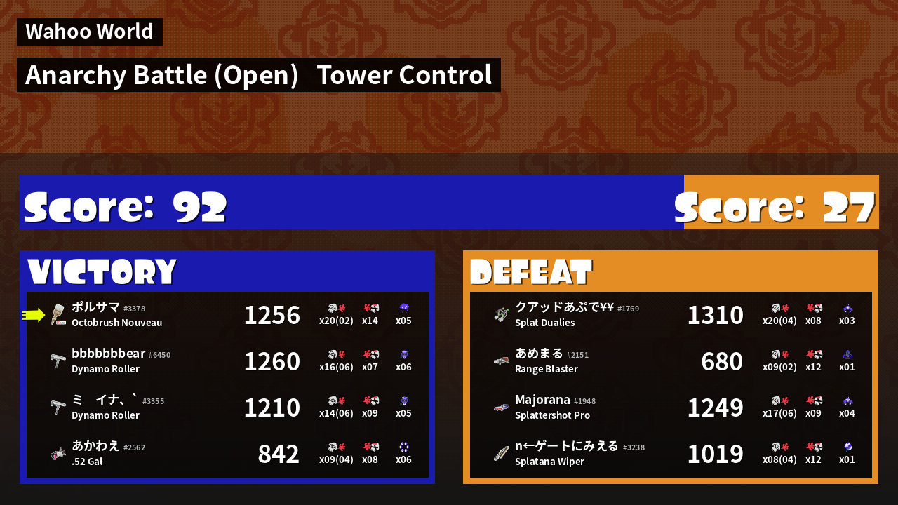 | Mode | Tower Control - Anarchy Battle (Open) | ||