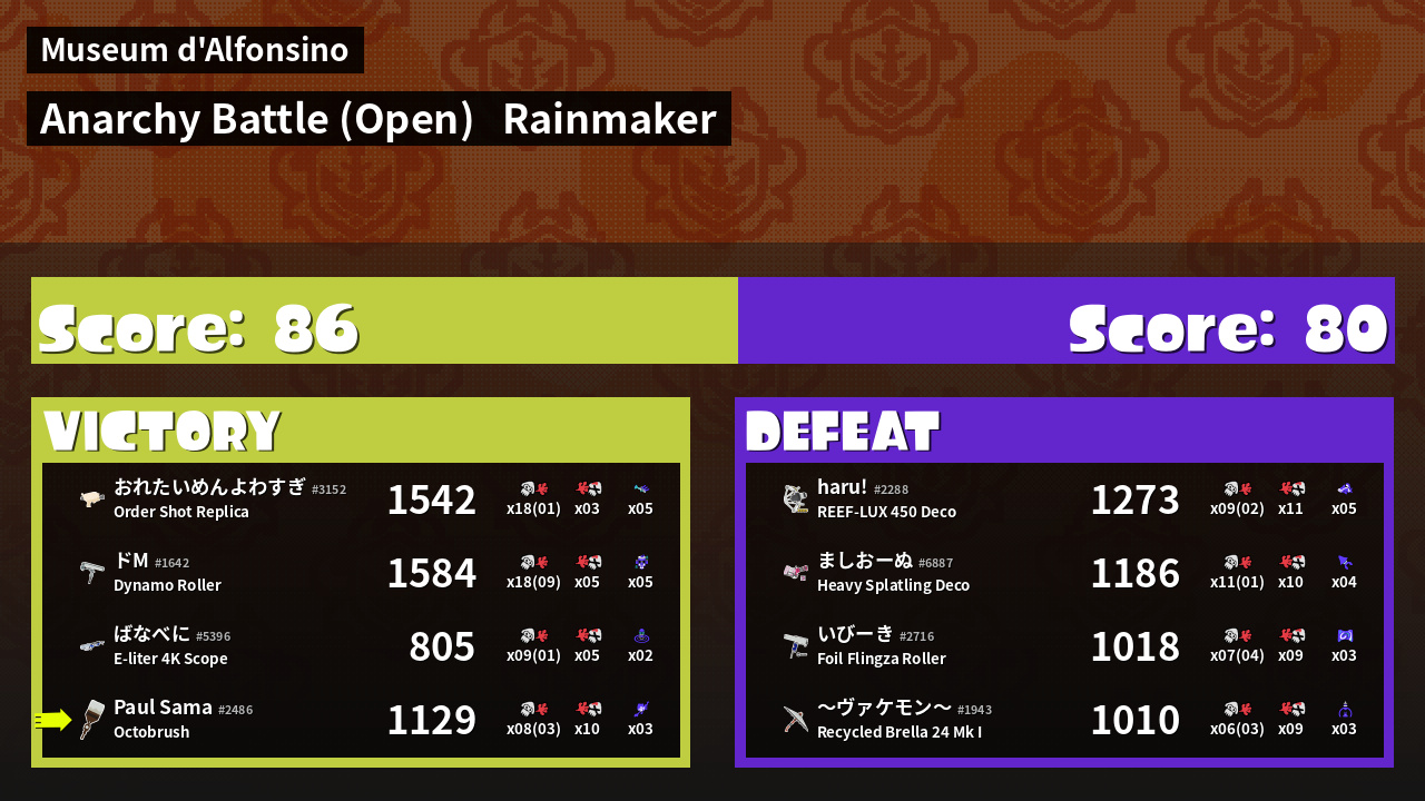 | Mode | Rainmaker - Anarchy Battle (Open) | ||