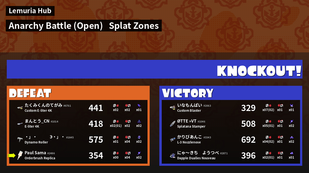 | Mode | Splat Zones - Anarchy Battle (Open) | ||