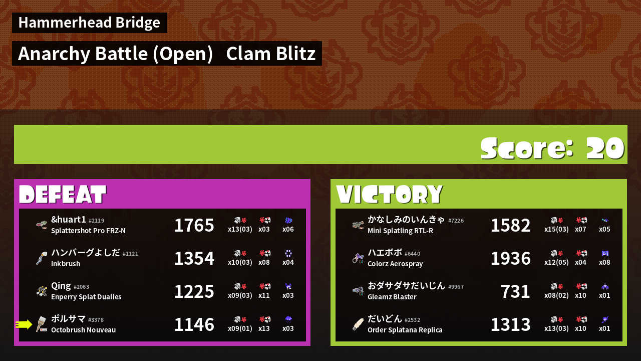 Name | Weapon | Inked | ![]() |