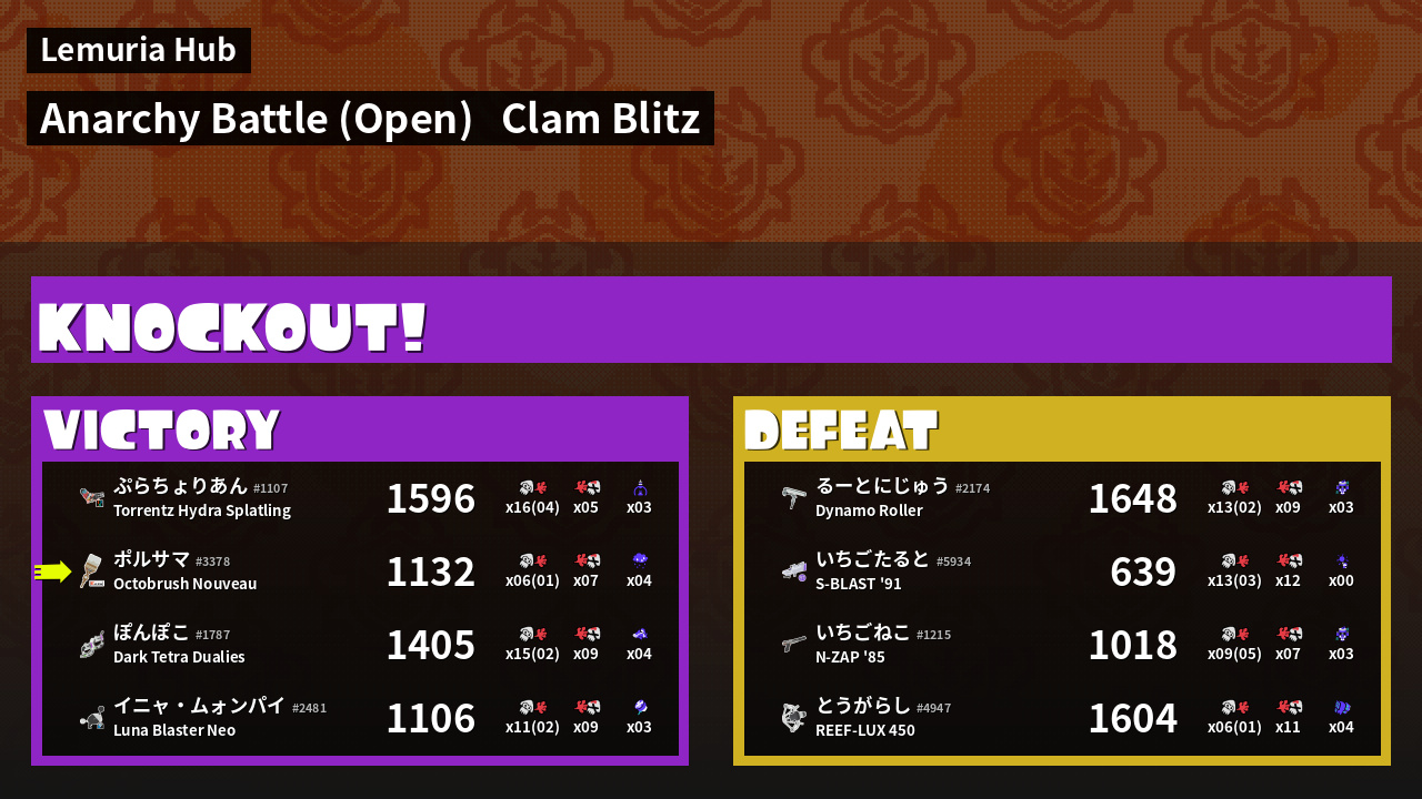 | Mode | Clam Blitz - Anarchy Battle (Open) | ||