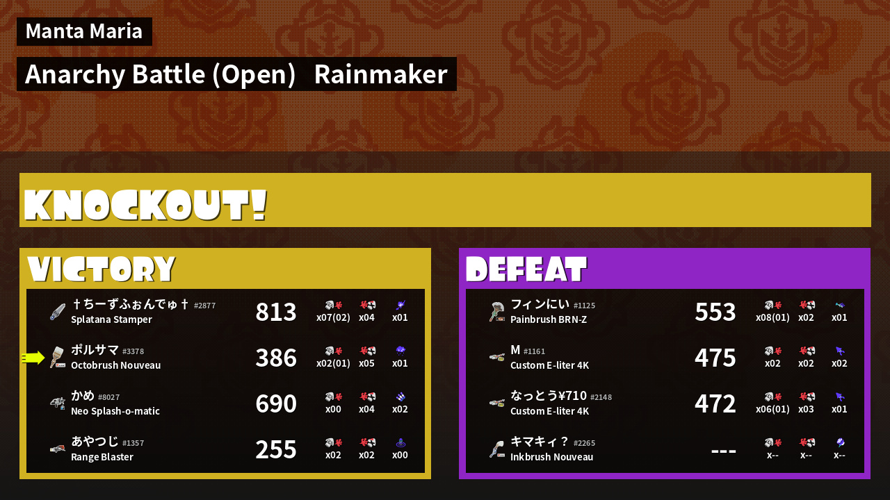 | Mode | Rainmaker - Anarchy Battle (Open) | ||