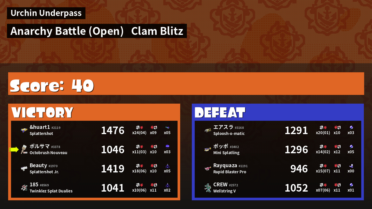 | Mode | Clam Blitz - Anarchy Battle (Open) | ||