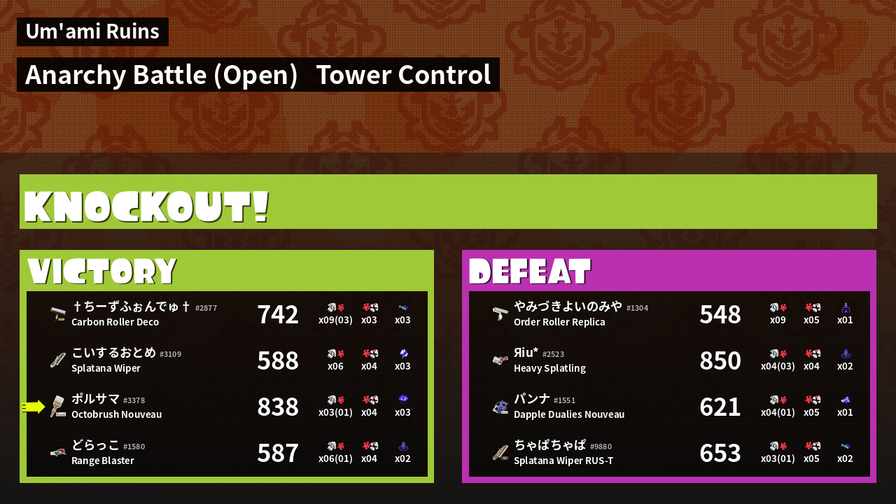 | Mode | Tower Control - Anarchy Battle (Open) | ||
