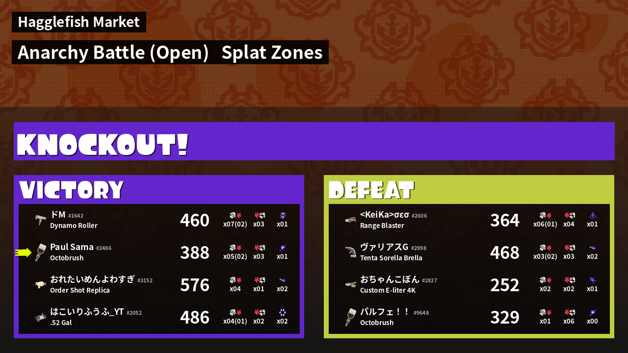 | Mode | Splat Zones - Anarchy Battle (Open) | ||